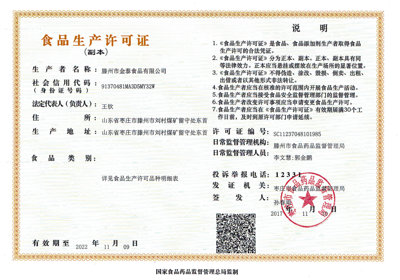 滕州市金泰食品股份有限公司是滕州一家大型民營企業(yè),成立于2017年1月,法人石圣,企業(yè)坐落于山東省滕州市劉村煤礦院內(nèi),占地30畝,個(gè)人獨(dú)資企業(yè),現(xiàn)有員工50人,注冊(cè)資金800萬元。年生產(chǎn)能力10萬噸,產(chǎn)值2.4億元。